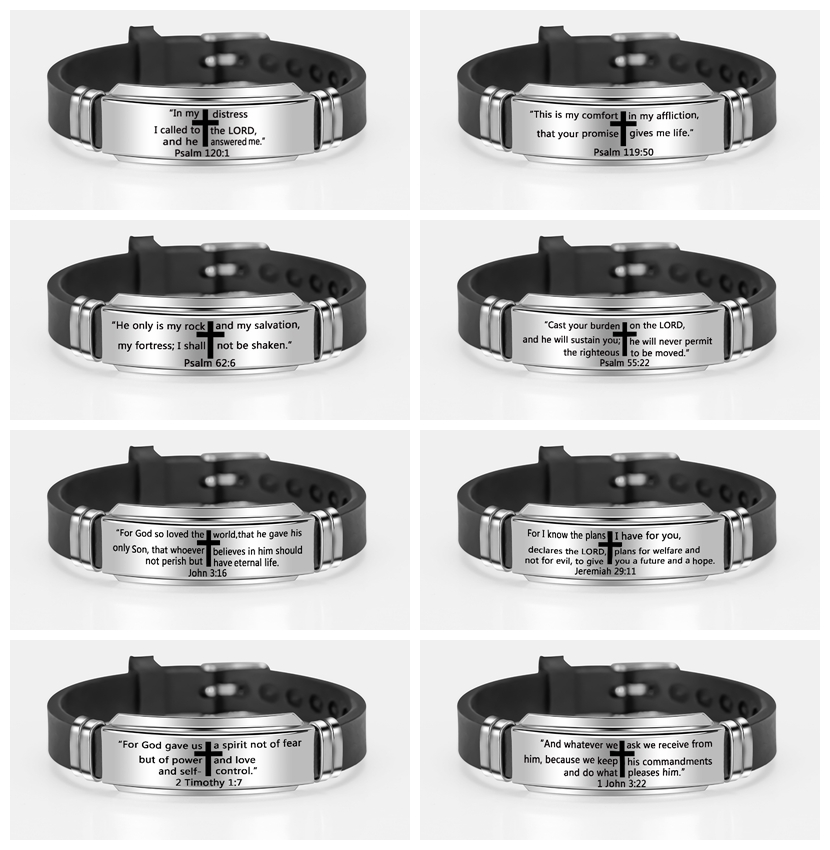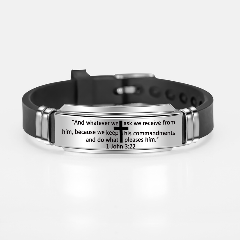| Product Name | Bible Lord’s Prayer Silicone Bracelets Stainless Steel Cross Scripture Men’s Christian Bracelet |