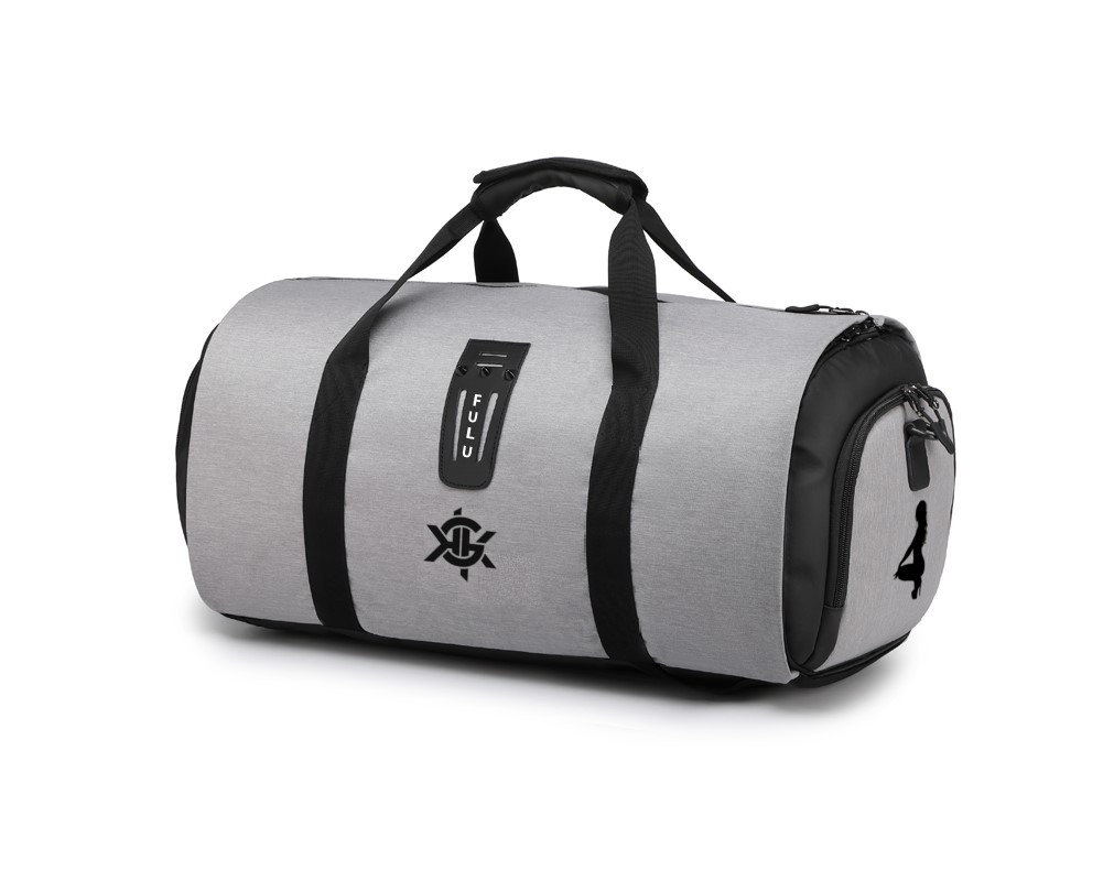KGK FULU Bag en noir et en gris. Accessoire de sport ayant une fabrication tissé avec du coton et du polyester. Triple lance dont deux se tenant au point, et l’autre sur l’épaule. Un patche logo FULU caoutchouté tissé sur l’avant. La signature logo KGK imprimé sur l’avant. Un poche avec fermeture éclaire tissé sur chaque côtés, dont une figurine d’une femme sexy accroupie, et portant des chaussures à talon très haute imprimé sur l’une d’entre elle. Intérieur intelligent, avec plusieurs ouvertures tissé pour ranger vos effets personnels, et vos vêtements.