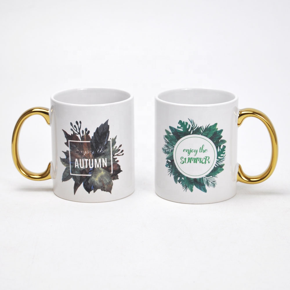Jumbo Mug with Electroplating Handle, Stoneware Mug with Gold Words Decal |