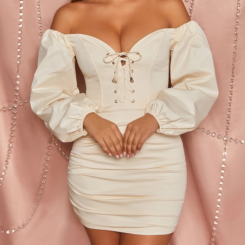 NS032 New arrivals sexy dress 2021 women off the shoulder lady lace up corset dress