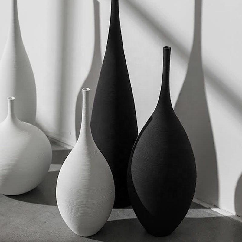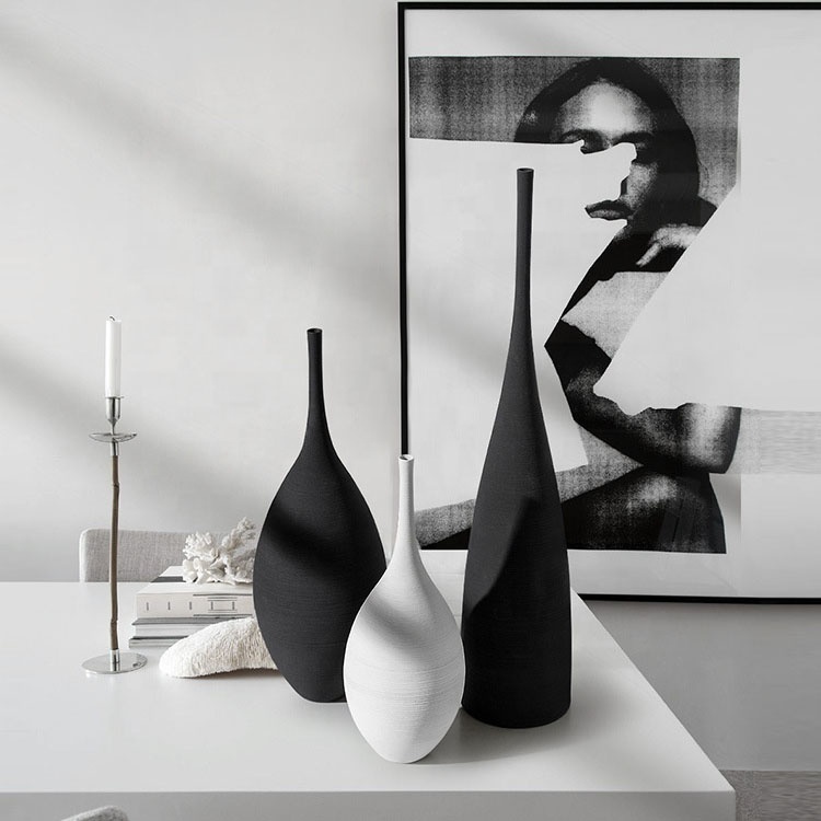 Moderne Simple de Haute Qualité À La Main Noir Blanc Vase D’art Céramique Salle de Réunion Décoration Salon Meuble TV Décoration Douce |
